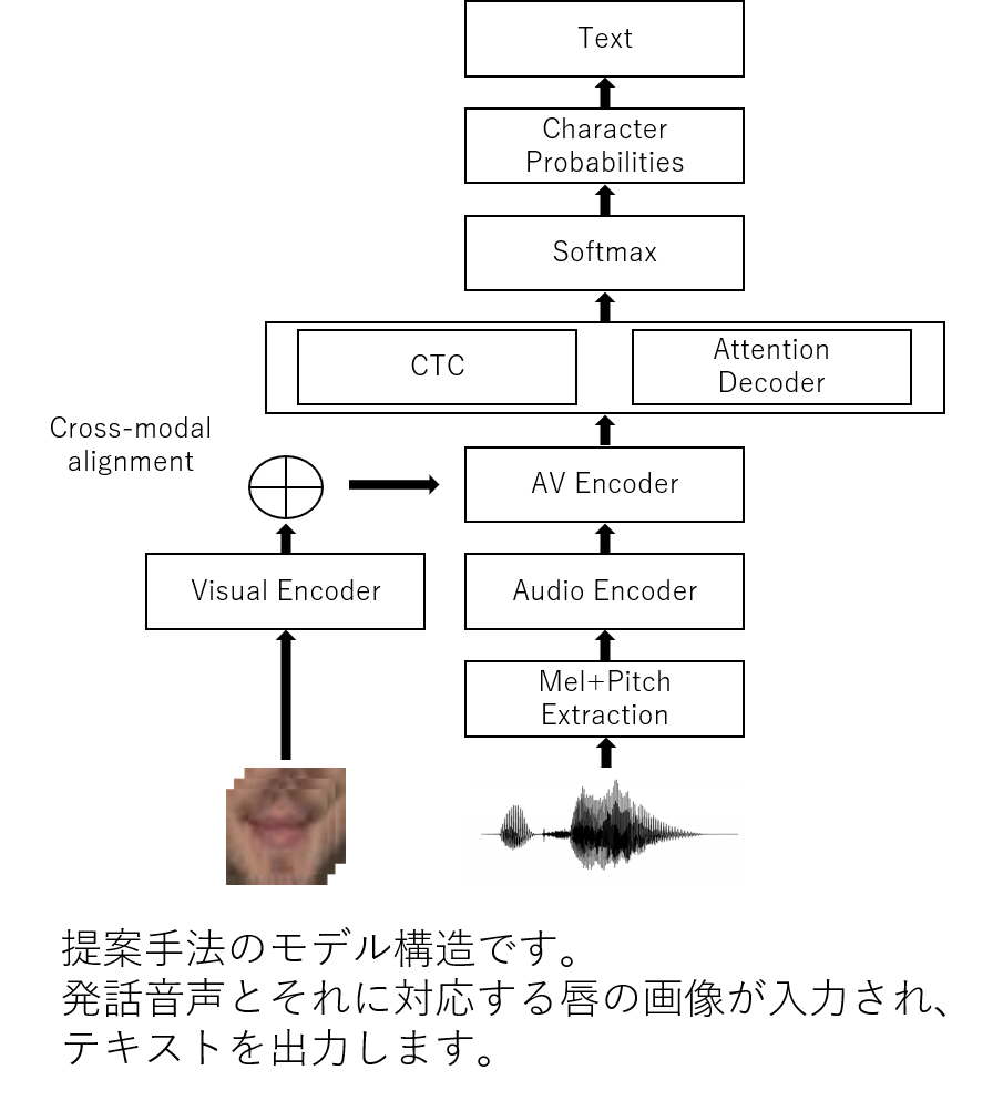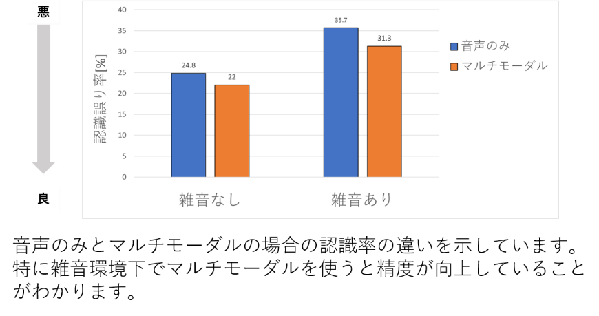 そこで音声と唇の画像を併用することで、発話認識の精度向上を目的とするマルチモーダル音声認識が注目されています。マルチモーダル音声認識は、特に雑音環境下において有効性が示されています。